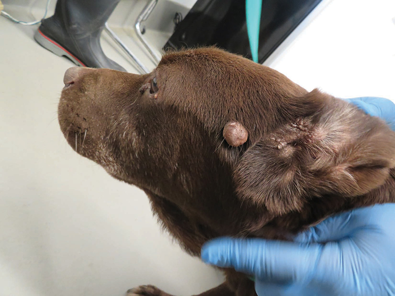 This dog wasn’t being treated for a mass on the left side of her face.