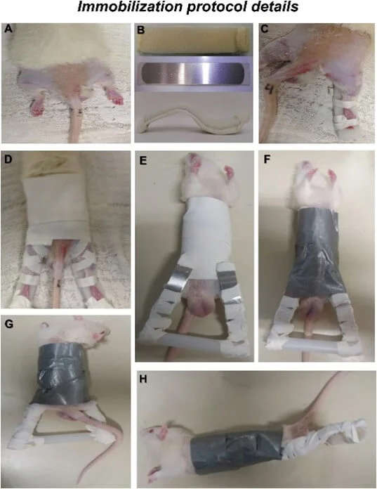 In this test funded by Ajinomoto, experimenters at Universidade Federal do Rio Grande do Sul taped splints to rats’ hind legs and left the animals to suffer this way for two weeks to force their muscles to deteriorate. Results of this experiment aren’t translatable to humans, owing to the profound biological and physiological differences between species.