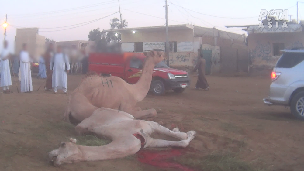 Camels from the tourism industry are also sold to slaughterhouses to become slabs of meat. They’re killed in full view of other animals—and even in front of children. 😲 😢 One camel whose throat had been slashed kept kicking for four minutes before a worker hacked at the animal’s neck with a machete.