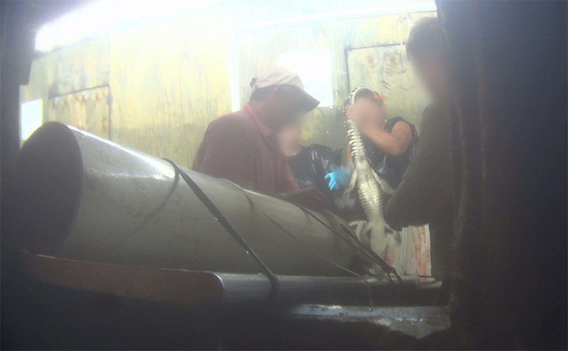 At just 1 year old, alligators were shot with a captive-bolt gun or cut into. If you think this is quick and painless, think again. Our investigator saw alligators moving their legs and tails in the bleed rack and bloody ice bins several minutes after workers tried to slaughter them. 😱