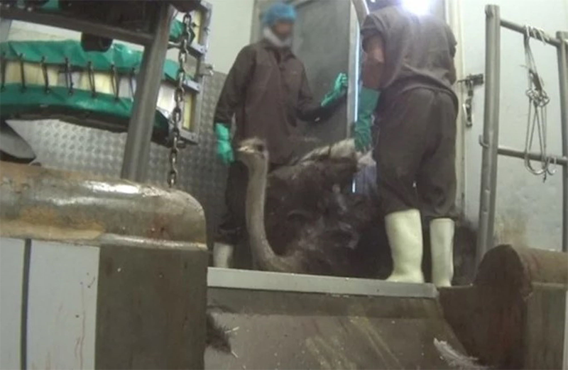 Ostriches aren’t safe from Hermès’ products, either. PETA investigators filmed slaughterhouse workers restraining them, electrically stunning them, cutting their throats, and skinning them. 😡