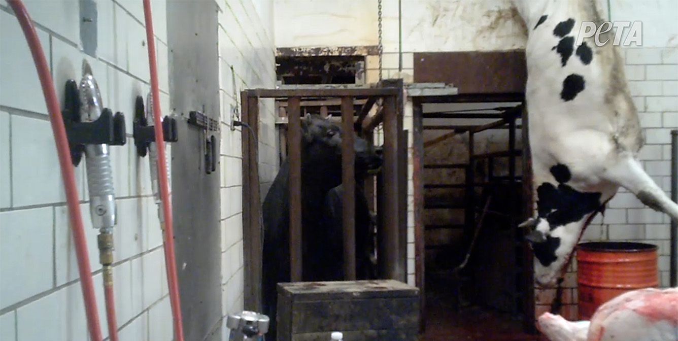 PETA undercover investigators filmed inside Ohio slaughterhouse Rodabaugh Bros. Meats, where workers kill, dismember, and skin cows for the leather used to make the official NFL and CFL leather footballs produced by Wilson Sporting Goods.